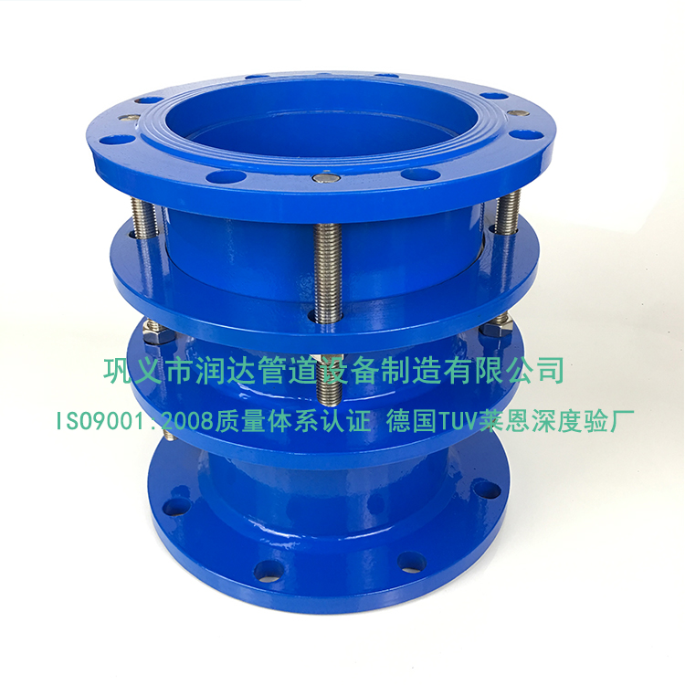 另一種是壓蓋式松套伸縮接頭是由兩片壓蓋法蘭和兩片密封圈和套管組成。結(jié)構(gòu)上講它的上下各有一個密封圈就使得它在位移補(bǔ)償上面就顯得更為靈活,因此它經(jīng)常用到管道的拐彎處,或者是有震動的管道連接處。由于它的外圍安裝的有傳力螺栓,所以該產(chǎn)品能將推力傳至整個管道分散壓力,從而保護(hù)管道的正常運(yùn)行。